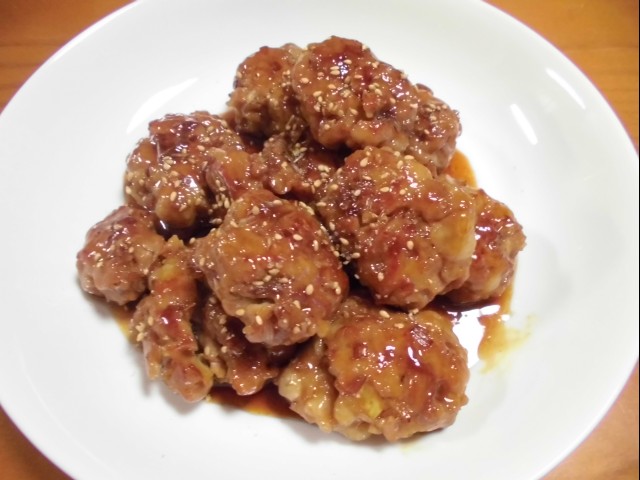 ↑豚コマを刻んで、鶏つくねっぽく丸めて焼いたもの。
