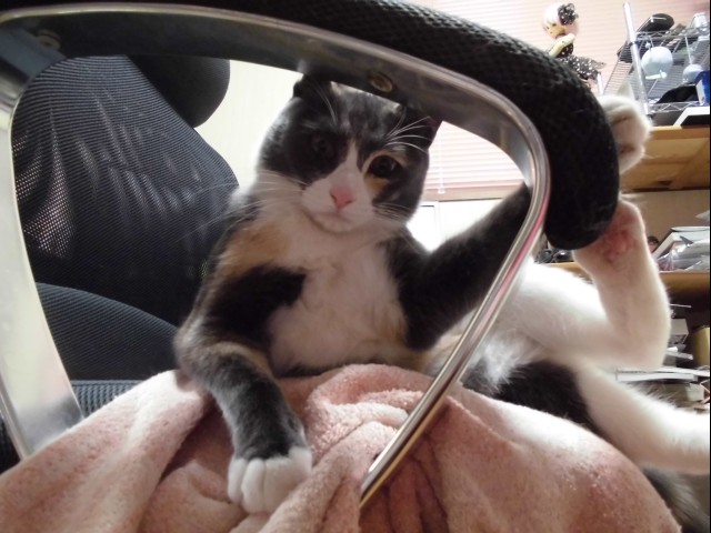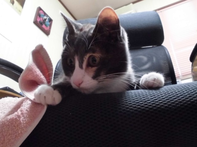 ↑今日のレンたん。夫の人のパソコン椅子で、やりたい放題。
