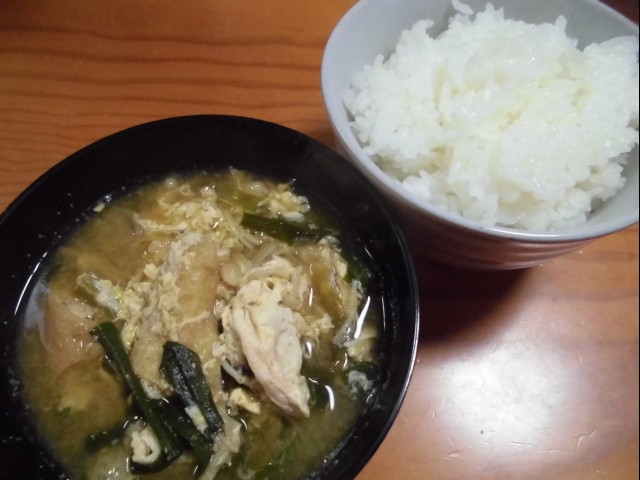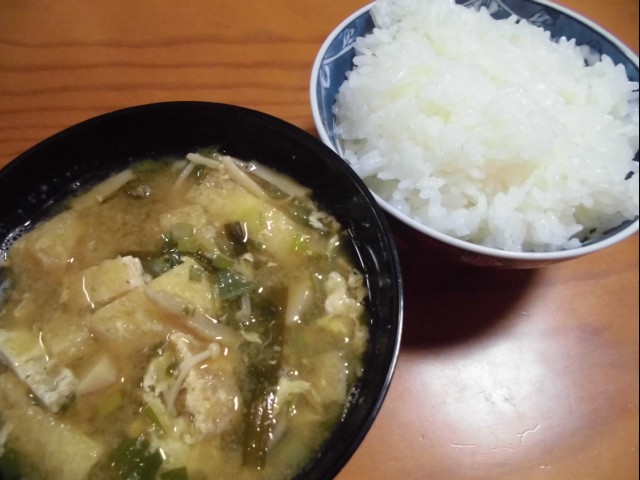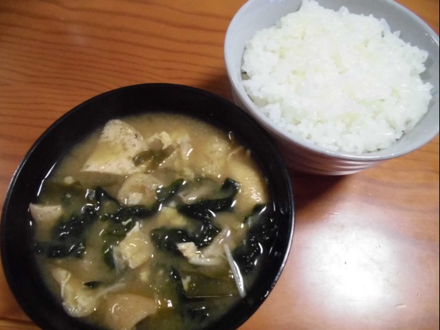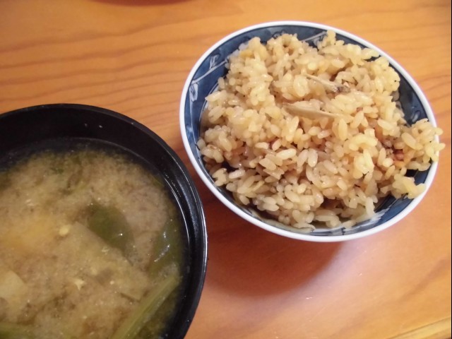 ↑昼ご飯。味噌汁・昨日の炊き込みご飯。