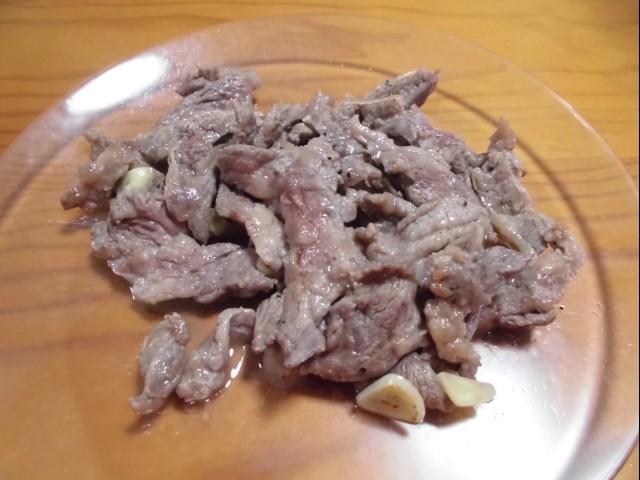 夫の人が焼いてくれた肉、ステーキみたいでうまかった~。