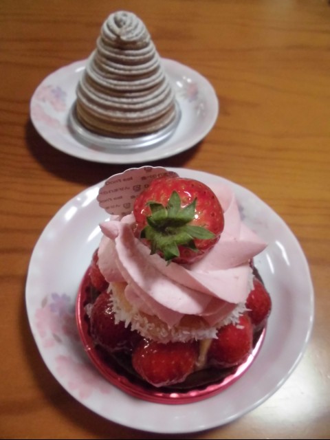 ↑奥・夫の人のモンブラン。手前・はすのイチゴタルト。