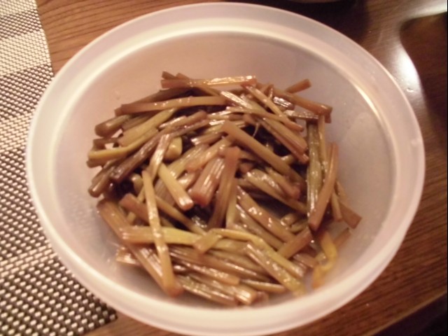 ↑きゃらぶきの煮物。庭でとれたらしい。えぐみが無くてうまい。