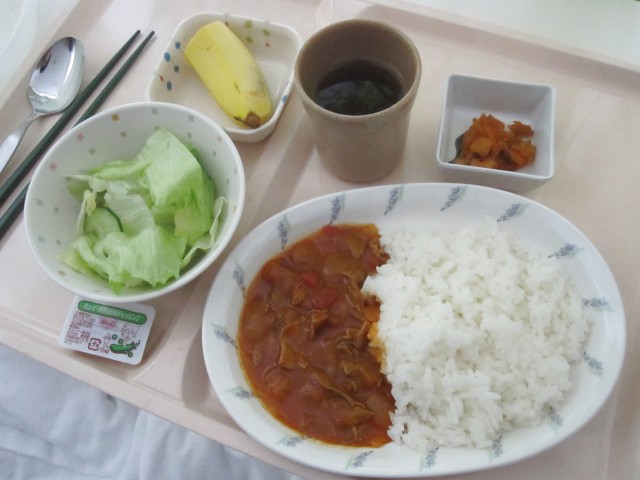 ↑昼ご飯。ハヤシライス・福神漬け・サラダ・バナナ。