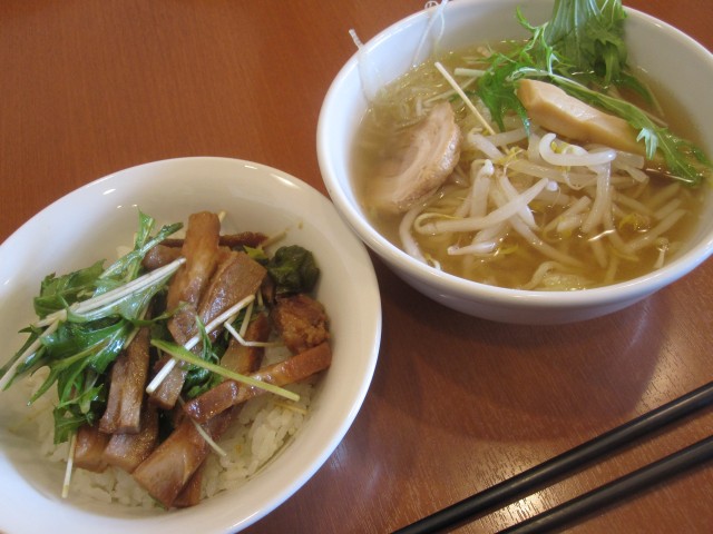 ↑半チャーシューご飯と、半ラーメン(塩)のセット。