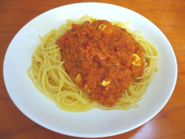 ↑ブランチ。夫の人特製☆トマトソースパスタ。