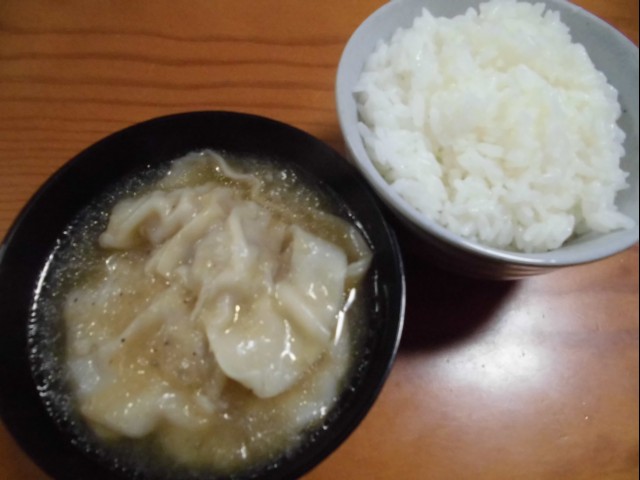 ↑夜ご飯。ワンタンスープ風・ご飯。