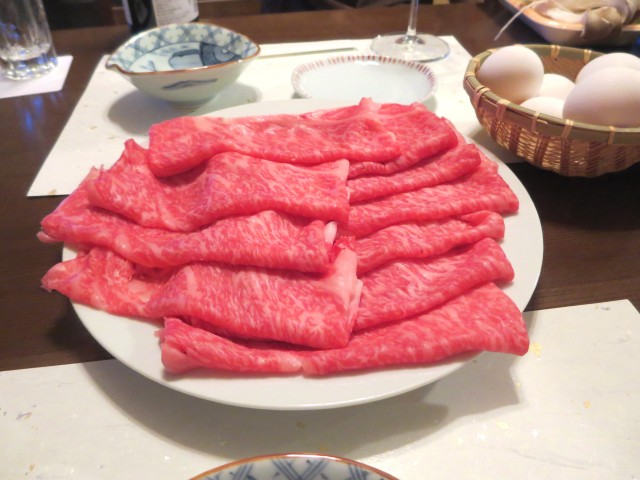 ↑夜ご飯は、下へ呼ばれて、みんなですき焼き。
